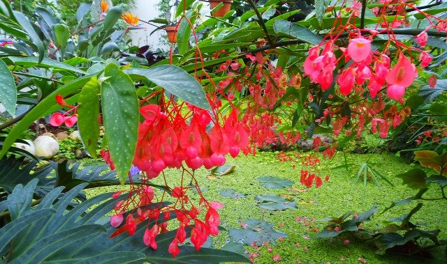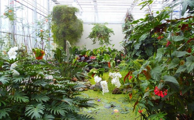Rengeteg szobanövényként ismert virág is van a trópusi kertben, filodendronok, legyezőpálmák, vitorlavirág, flamingó minden színben, vízi pálma, cikász, szobafenyő, papagájvirág, és még hosszan sorolhatnánk.