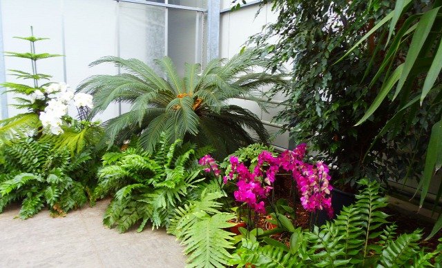 A trópusi növények között pedig ott vannak mindenfelé az itt nevelt, gyönyörű orchideák is.