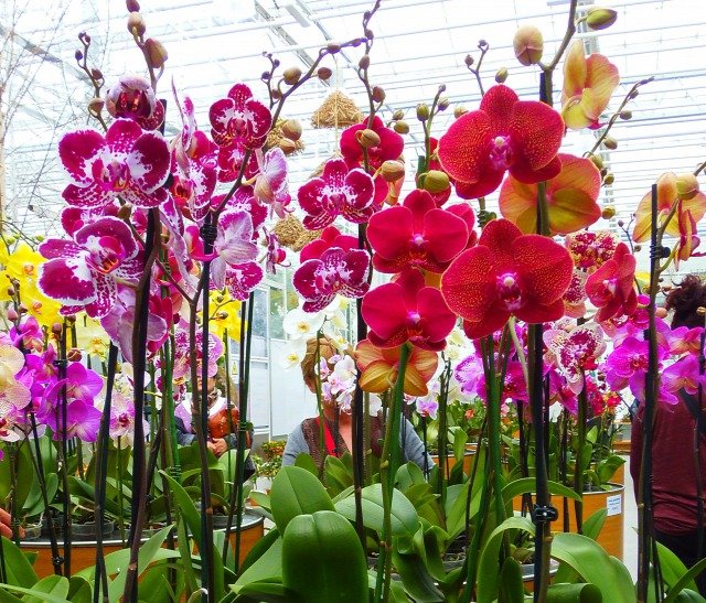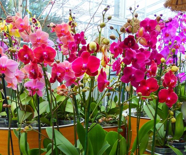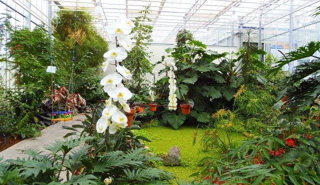 Az orchideák nevelő-csarnokaiba nem léphetünk be, mert a növényekre veszélyes kórokozókat, fertőzéseket vihetnénk be a ruhánkon, cipőnkön, de bekukucskálni azért lehet pár helyen.
