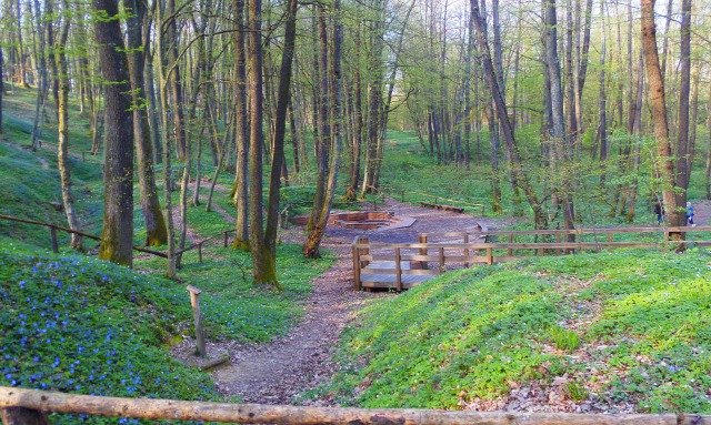 Ha tavasszal érkezünk, még a fák lombosodásának kezdetén, az erdőt virágszőnyeg borítja. Mindenfelé kék meténg, és rengeteg tőzike. Mint nálunk a hóvirágból, itt a tőzikéből van sok-sok bokorral. De a tőzike is védett növény, csak gyönyörködjük benne, ne szakítsuk le.