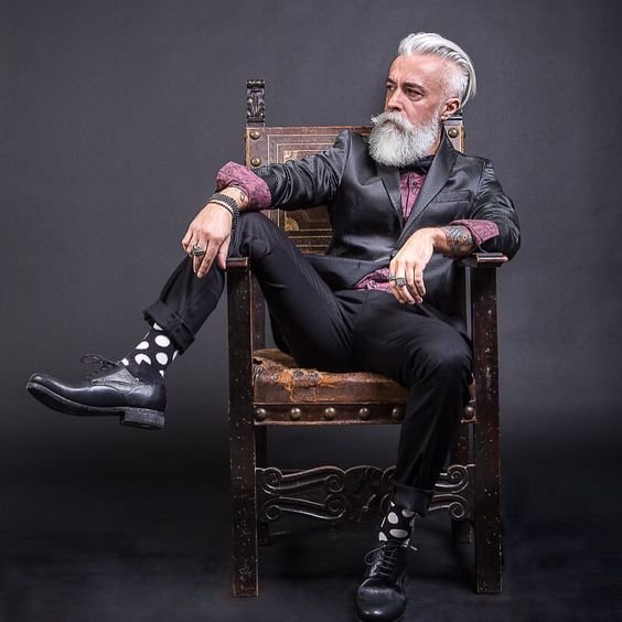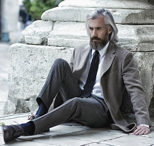 Egyes férfiak olyanok, mint a bor, az idő csak nekik dolgozik, 40 felett érnek be igazán. Az őszülő halánték, még inkább a teljesen ősz haj, igazi koronájukká válik. Azért mert valaki már nem 30 éves, nem kell stílust váltania. Ez egy beteg sztereotípia, amit az idősebb generáció olykor le akar erőltetni a torkunkon. Például én sem leszek szürkébb a korom előrehaladtával, bármennyire is fájdalmasan érinti ez azokat, akik a konfekciót részesítik előnyben.