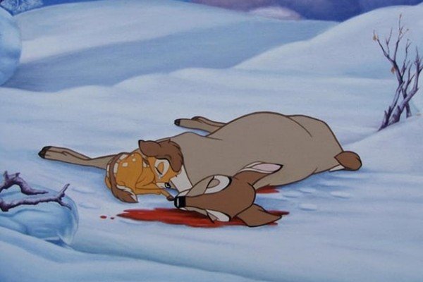 2. “Fuss, Bambi, fuss!” – kiáltotta utolsó leheletével Bambi anyukája, amikor lelőtték a vadászok. A kis őz túlélte, de – mint az a filmből és a természettudományi ismereteinkből is kiderül – az élete hátralévő részlete is küzdelem és menekülés a gyilkos puskájú ember elől.