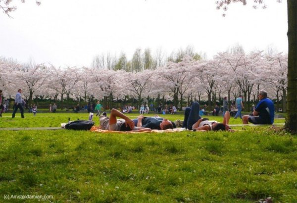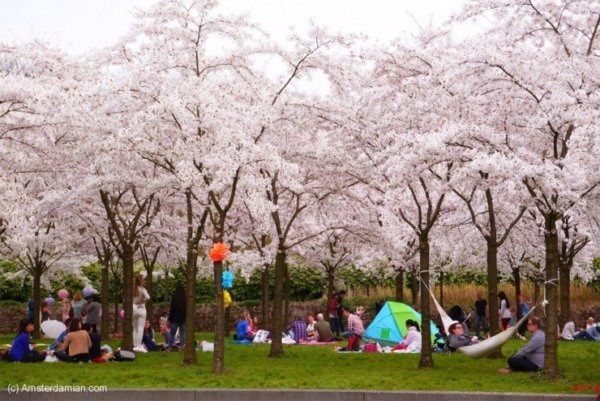 Virágzó cseresznyefák gazdagon találhatóak a holland fővárosban, de az Amsterdamse Bos dicsekedhet a legtöbbel. A park háromszor nagyobb a new yorki Central Parknál! Tavasszal a cseresznyevirágzás elképesztően romantikussá teszi. Április 9-én fesztivált is rendeznek ott ennek tiszteletére.