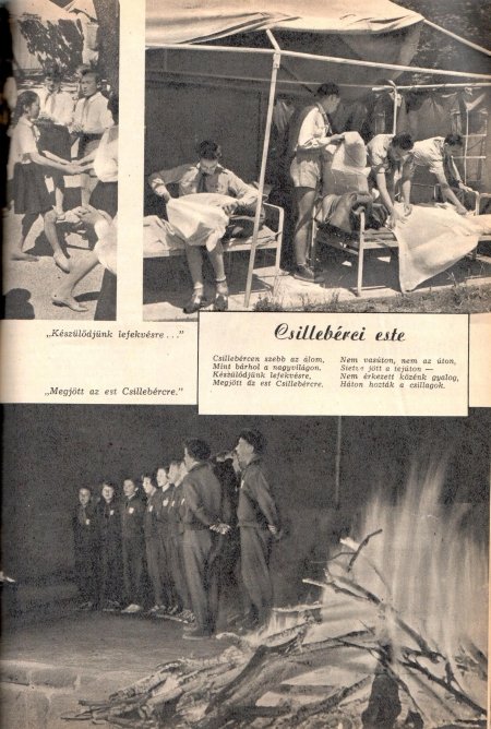 Az 1970-es, 80-as évekre persze nagyon sokat finomodott a központi pártpropaganda, nem folyt olyan nyilvánvaló és kemény agymosás, mint az 1950-es években Rákosi alatt. A nyári tábor egyenlő volt a rengeteg játékkal, a kirándulással, fürdőzéssel – szigorú vízhőmérőzést követően -, a szalonnasütéssel és az esti tábortűzzel.