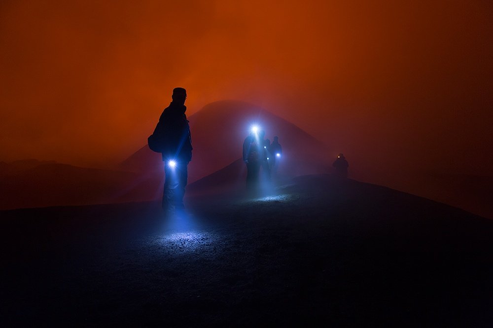 Turisták érkeznek vissza az aktív vulkán kráteréből – Tolbachik, Kamcsatka, Oroszország