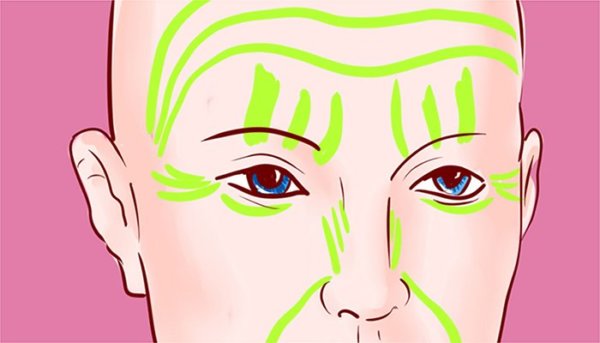 3. Következik a szemmasszázs: alul, felül (a szemhéjat), ezután megint alul, ki a halántékig, majd le a nyakon. Ezt is ismételjük háromszor.