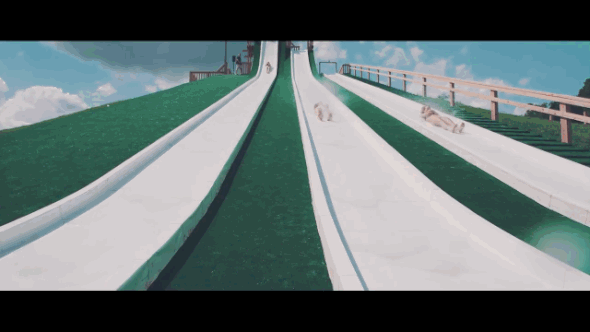 Mindössze annyit tettek, hogy a csúszda érkezési végét visszaemelték egy darabon, ezzel magasra repítve a bátor vállalkozót, aki a napsütésről hirtelen a magasban találja magát, majd hatalmas csobbanással érkezik türkizkék, hűvös vízbe.