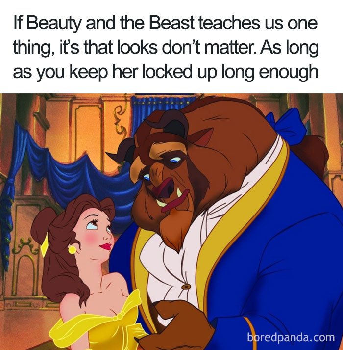 A Szépség és a Szörnyeteg tulajdonképpen arra tanít, hogy ne problémázz, ha elrabolnak. Tök mindegy meddig vagy elzárva a világtól. Ez az úgynevezett Stockholm-szindróma.