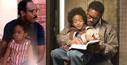 Christopher Gardner kisfiával, Will Smith szintén saját kisfiával a szerepben