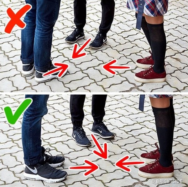 11. Ügyelj a lábaid irányára, miközben másokkal beszélgetsz. Ez sokat elárul az igazi érzésekről. Erről te is következtethetsz. A teljes figyelem és nyitottság akkor van meg, ha a lábak is feléd fordulnak, ellenkező esetben el akarják hagyni a beszélgetést a lehető leghamarabb.