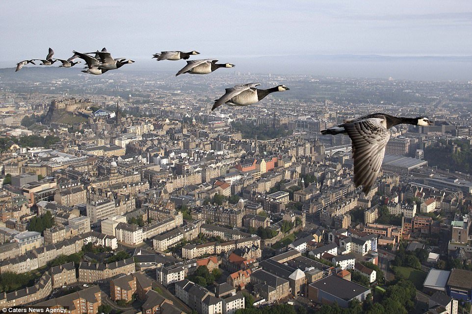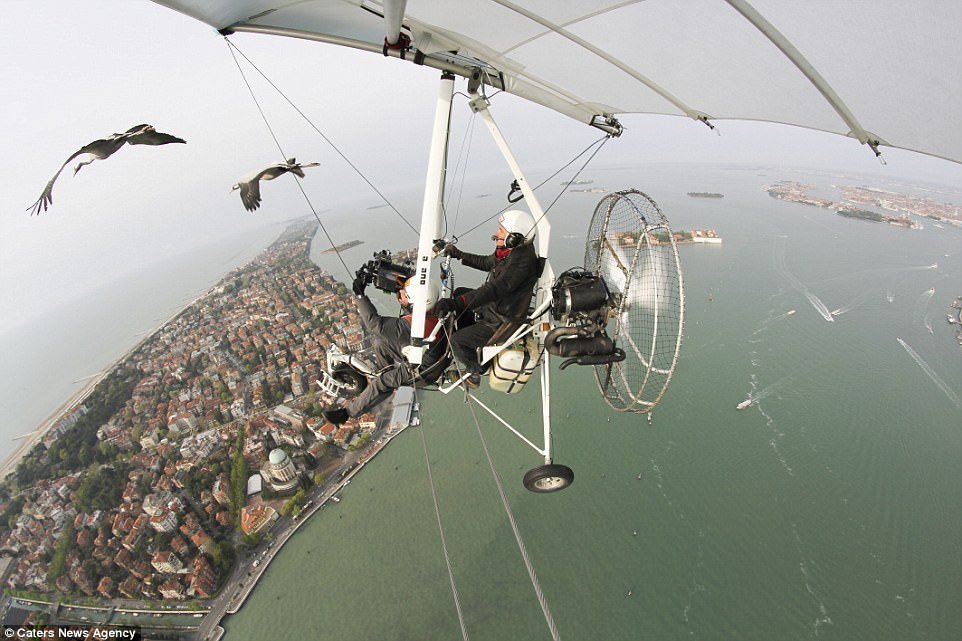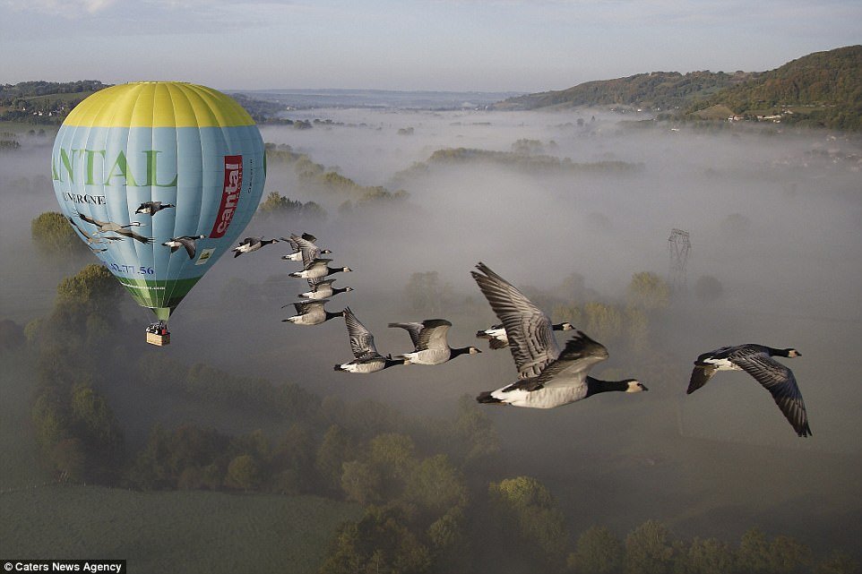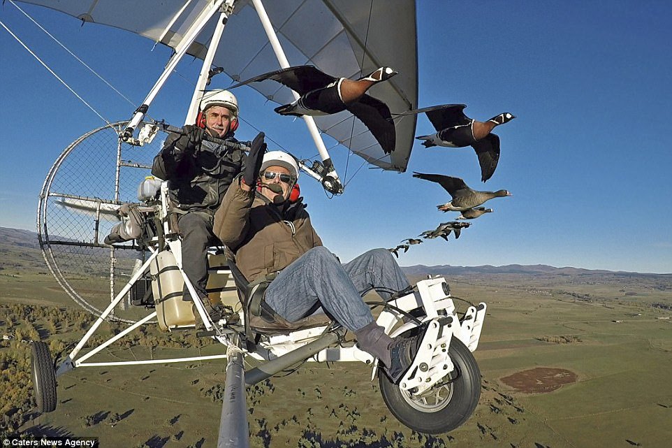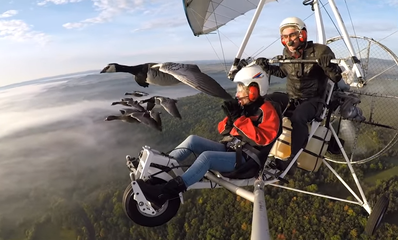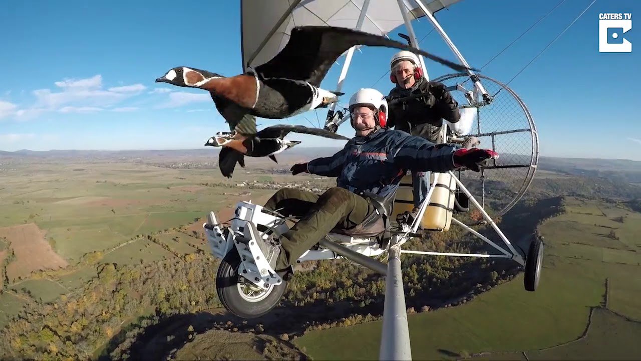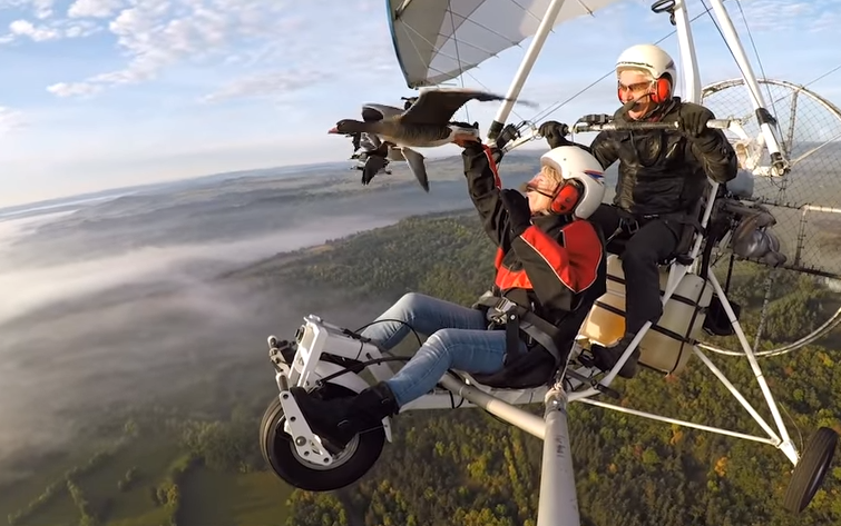 A férfi ösztönzi utasait arra, hogy érintsék meg a madarakat repülés közben, bár elismeri, hogy nem mindig szeretik, mert megbontja a formációjukat.