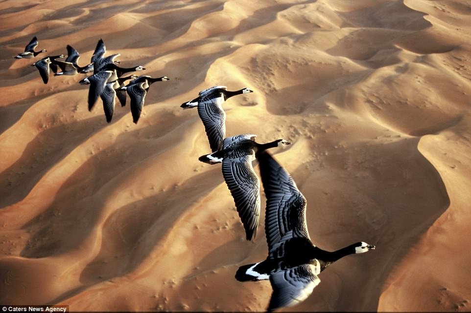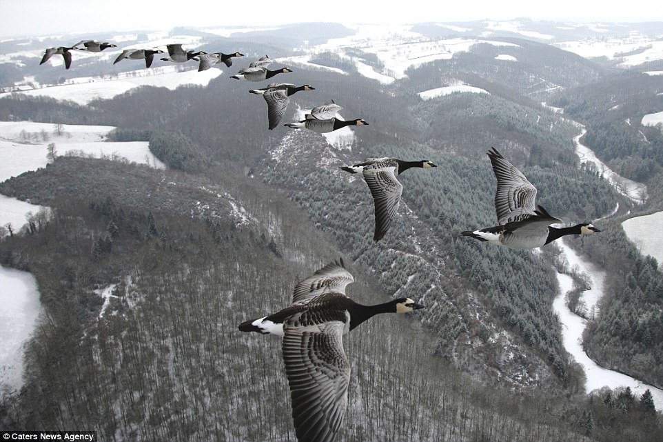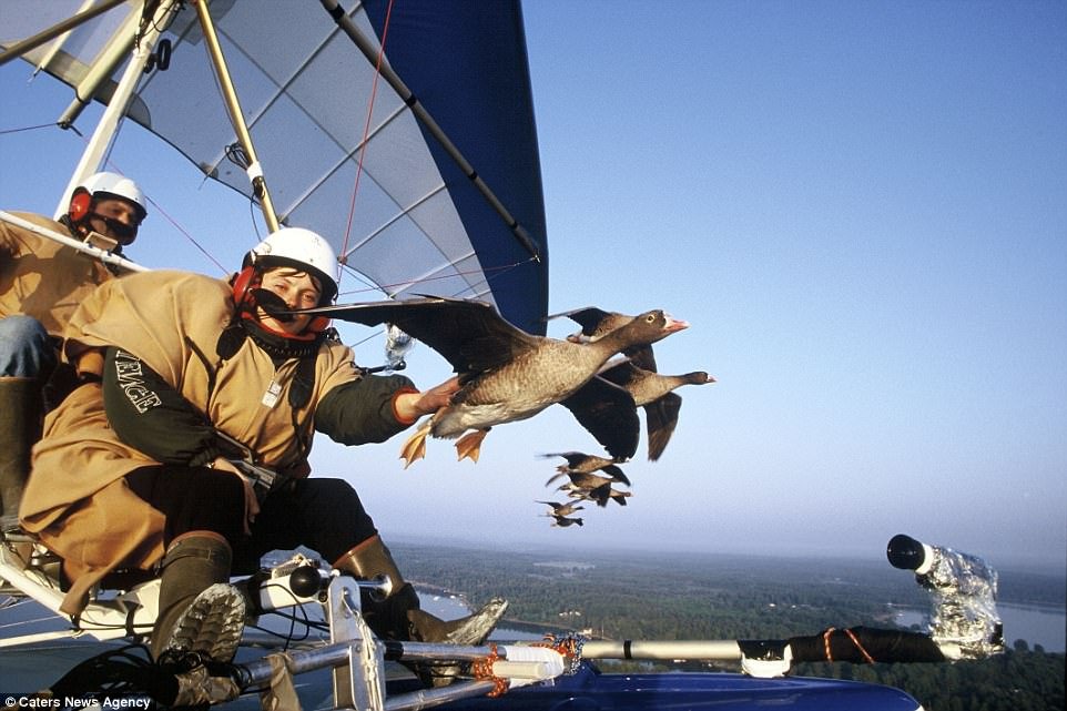 Az alábbi kép 1999-ben készült, Christian és felesége éppen a kisebb testalkatú libákat vándoroltatják át Svédország védett területére.