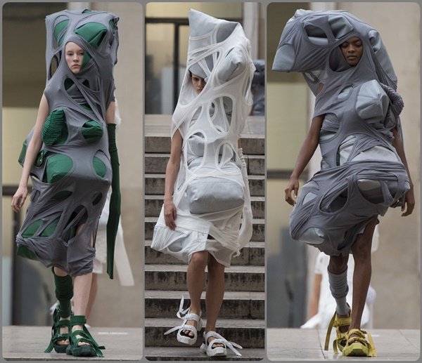 Nos, azok a bátrak, akik reggelente kiszabadulnak majd az ágyból, és boldogan elhagyják a házat párnákkal a fejük körül, paplanokkal a csípőjükön, wc papír szörnyként vagy színesben, szóval azok, akiket rémült szemek kísérnek majd az utcán és miattuk felzokogó gyerkeket nyugtatnak majd szüleik, csak mondják egyszerűen: Nézzétek meg Rick Owens tavaszi kollekcióját tudatlanok!