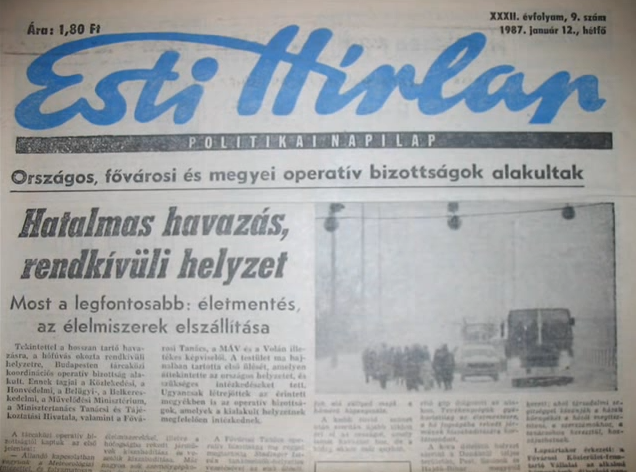 1987 januárjában a hegyeket 80 cm-es, az ország túlnyomó részét 40-60 cm-es hótakaró borította. Az utakon kétméteres hótorlaszok is előfordultak. Az M7-es autópálya járhatatlan lett a havazásnak köszönhetően. Újabb videók a nagy télről.