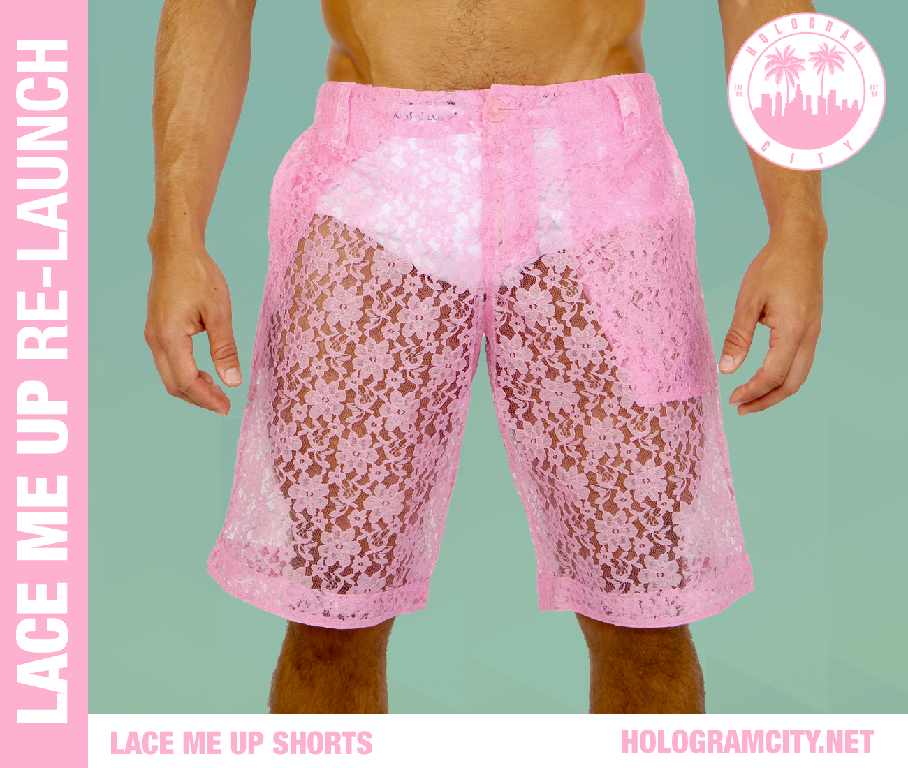 A Hologram City által tervezett rövidnadrág sokféle színben jelenik meg, beleértve a rózsaszínt, a kéket, a zöldet, a lilát és a sárgát is. A csipke anyagból készült gatyókához készülnek hozzáillő felsők is, bizony.