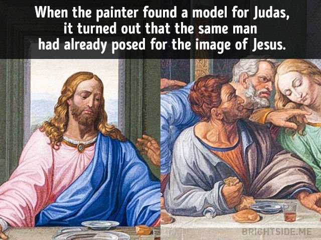 …amikor a festő elképzelésének megfelelő férfit megtalálták Júdás karakteréhez, kiderült, hogy a férfi már modellt ült Jézus alakjához is (6 évvel és néhány börtönévvel előbb)