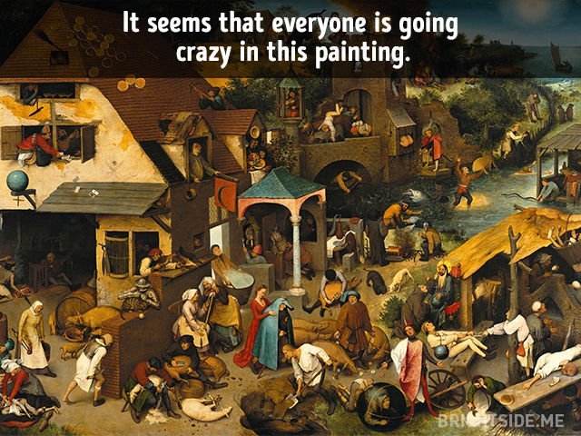 Pieter Bruegel “Flamand közmondások” című képén úgy tűnik, mintha mindenki őrült lenne…